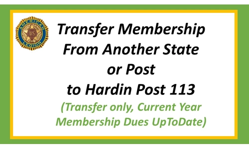 You are granting permission for Hardin Post 113 to transfer your membership to Hardin Post 113 from your current Post.